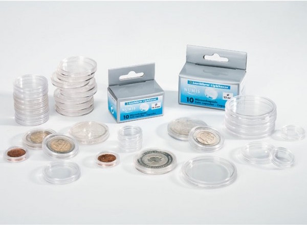 Jau mazliet nopietnāks, kā arī mazliet dārgāks monētu glabāšanas veids ir - plastmasas kapsulas, kas arī pieejamas visos nepieciešamajos izmēros.