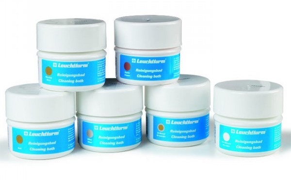 Šie šķīdumi sevī ietver arī “vanniņu”, kurā monētu ielikt, tādejādi nav nepieciešami nekādi citi trauki - atver iepakojumu, ar pinceti ieliec monētu, sekojot instrukcijām, nogaidi paredzēto laika termiņu, un ar pinceti ņem ārā jau attīrīto monētu! Monēta jānoskalo ūdenī un jāļauj pašai nožūt.