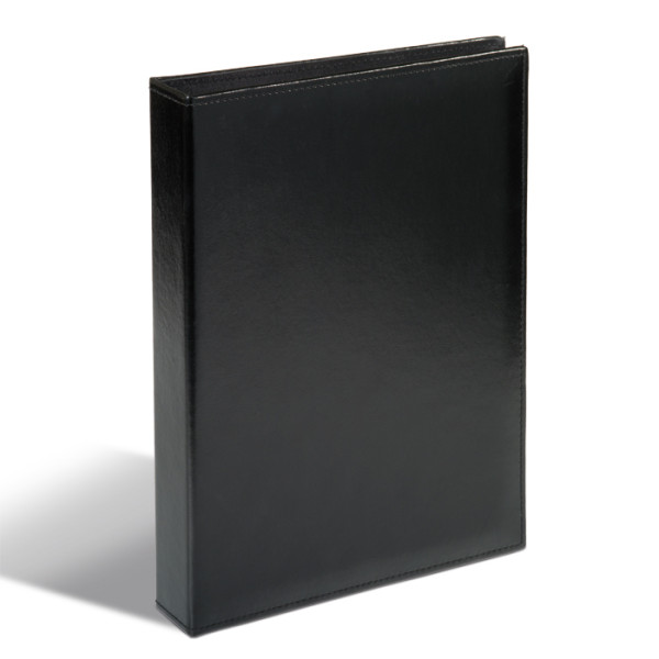 High-quality document album for storing small stamp sheets, bonds/historical documents, references, certificates and other assorted A4 documents. Includes sturdy plastic sheets to store and display your documents in style. Sheet format: 212 x 300 mm (8 3/8 x 11 7/8"). Quality workmanship with sewn edges and Sophisticated leatherette cover. Colour: black.