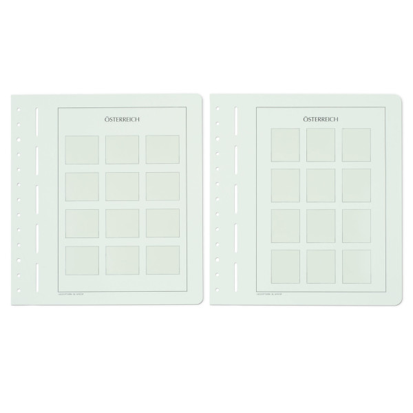 We offer special LIGHTHOUSE blank album pages (12 neutral fields with SF mounts per page, 100 % polystyrene) to store the Austrian personalised stamps which are available since November 2003. Compatible with LIGHTHOUSE ring, turn-bar and springback binders, 13 punched holes.