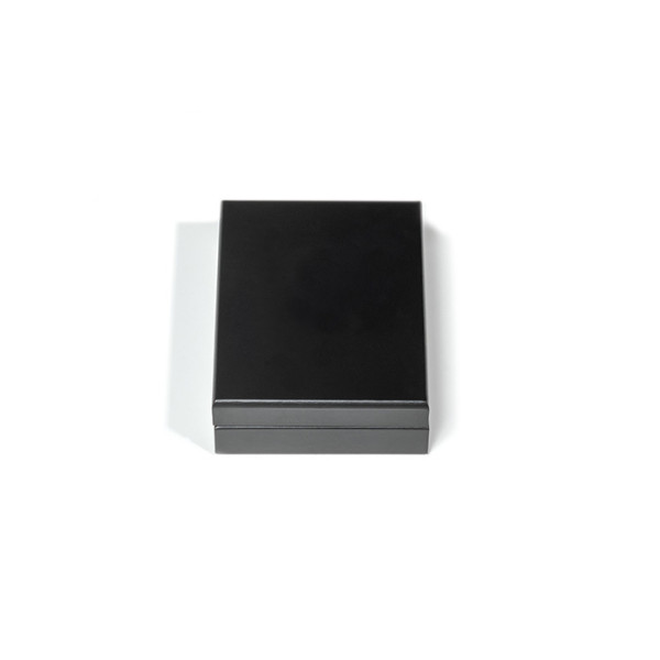 VOLTERRA etui with mahogany grain finish for 1 bullion in blister packaging. Lid cushion upholstered in black satin. Black velour-like inlay with one cavity (86 mm x 54 mm). Incl. satin band for holding a certificate. Overall size: 120 x 90 x 34mm.